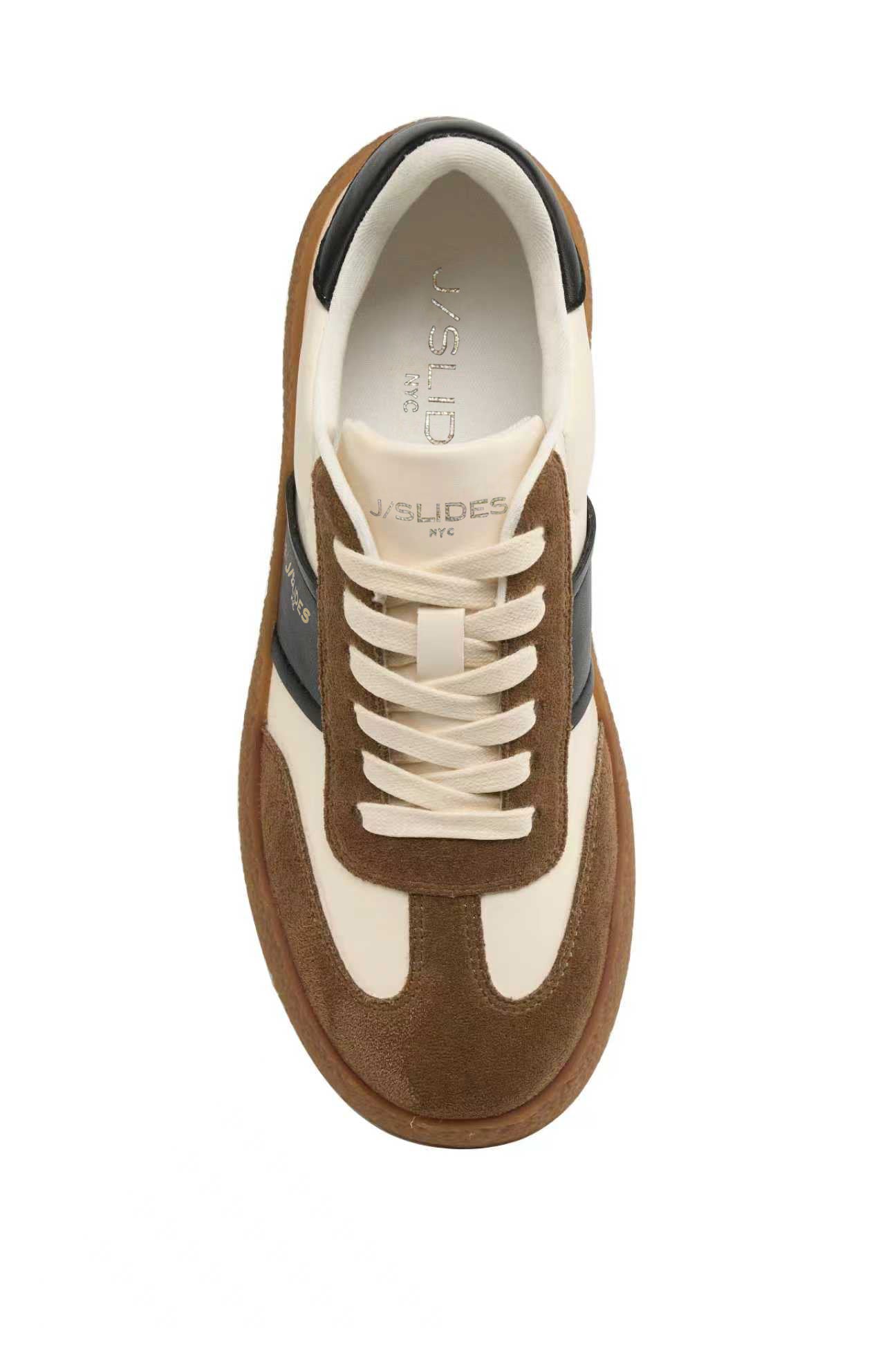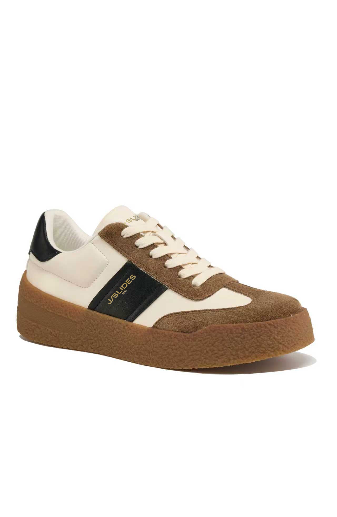 Step into effortless cool with the OLIVE sneaker. Featuring a sleek black leather and suede upper, a contrasting cream side panel, and a chunky gum sole, this sneaker strikes the perfect balance between retro and modern. The lace-up design ensures a secure fit, while the cushioned footbed and soft lining deliver all-day comfort. Whether paired with jeans, joggers, or a casual dress, these sneakers add a sporty-chic finish to any look.